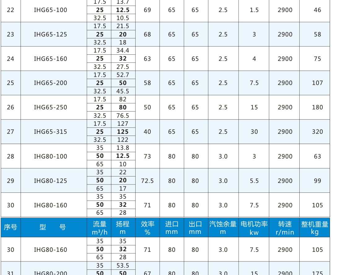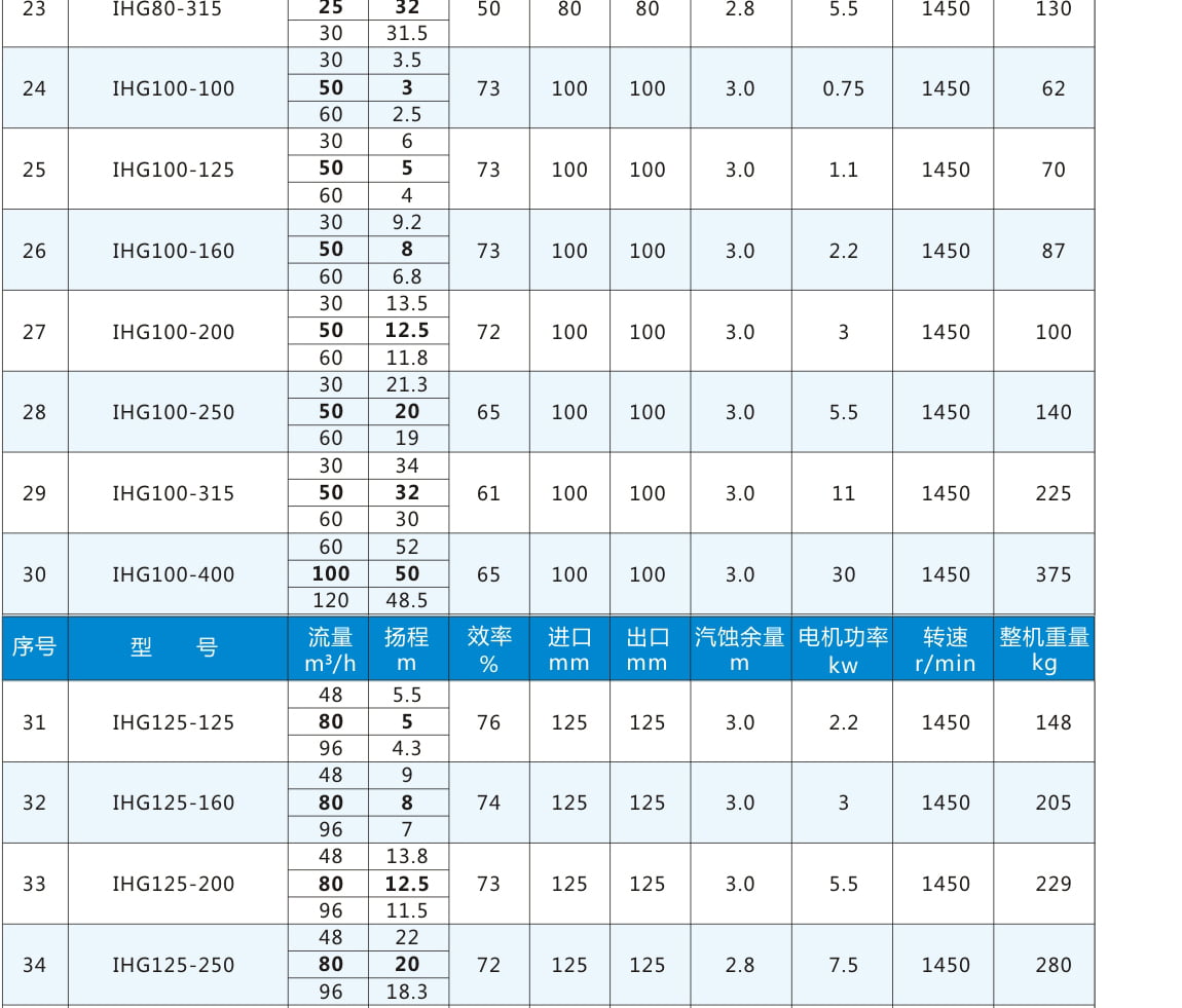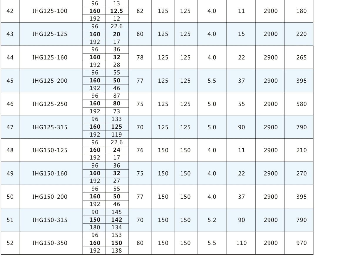 IHG:臥式不銹鋼管道泵代號丨 80:進出口直徑80mm 丨 160:葉輪名義直徑160mm